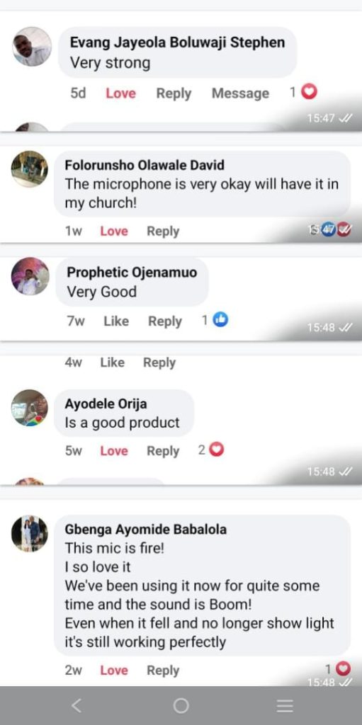 Tell your people to deliver the last two I order to our branch in Enugu. I have tested one of the best microphone since I started ministry.